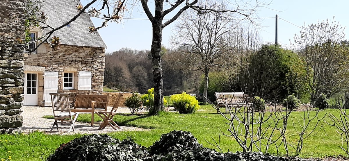 Maison en pierre dans hameau calme. Poutres et pierres apparentes. Cheminée avec insert 1 jardin intérieur clos et 1 petit jardin en face de la maison. Barbecue, salon de jardin et transats. Mise à disposition gratuite de : 2 kayaks + gilets pour naviguer sur le Blavet à 100 m, 2 vélos de ville. Logement fibré Livebox 1Gbit/s en réception et 700 Mbit/s en émission. Torchons, sacs poubelles et produits d'entretien. Filtres à café, sucre, épices, sel, huiles ... Aluminium...