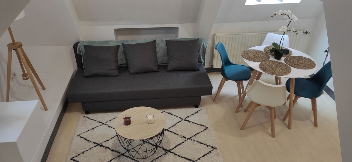 Lovely apartment accommodating up to 5 guests. 100 m2 floor space. View onto a medieval church and the distant sea.Located in the historic center of Perros-Guirec First beach at 7-mn walk. Large south-facing living room. Open kitchen with all amenities. Dishwasher. Microwave and classic ovens. Large countertop space. 2 large bedrooms, one with a queen-size bed, the other with twin beds. Roller shutters. 1 single bed also on the mezzanine. Bathtub. Free Parking space on site for a car (no van).