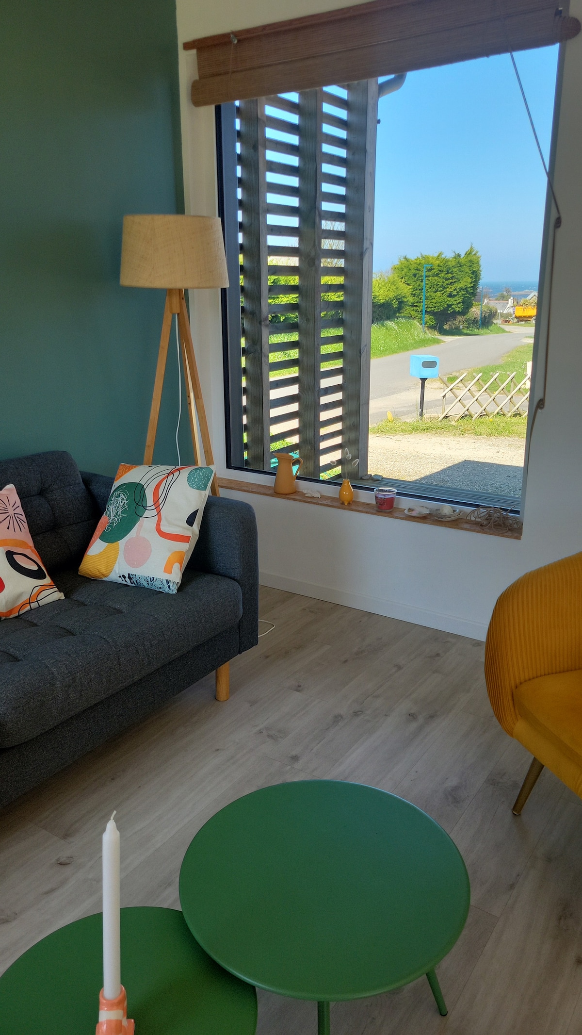 Studio bois de 20m2 avec vue mer et sa terrasse. Vous avez une vue sur les aiguilles de Portsall, les plages de Tréompan, l’entrée de l’aber Benoît et les îles environnantes. Jardin de 2000m2 avec terrasse, salon de jardin, coin feu, bar extérieur et barbecue, commun avec notre maison. Un espace de vie avec salon, cuisine ouverte, canapé-lit (160x200) pour 2 personnes, salle de bain avec WC et un lit (90x190) 1 personne. Belle terrasse face à la mer.