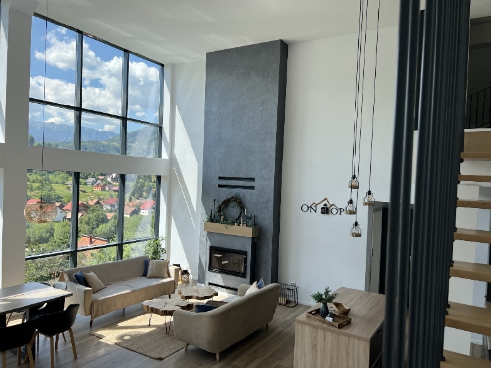 Carpathian Log Home es un complejo de dos chalets de madera situados a los pies del Parque Nacional Piatra Craiului. Las lujosas cabañas están situadas a las afueras del bosque, cerca del legendario Castillo de Bran. El primer chalet tiene cuatro dormitorios con baño privado, sala de estar con techos altos con chimenea y pared de vidrio con vistas increíbles, cocina gourmet, sauna/jacuzzi, barbacoa y cenador. Tu alojamiento vacacional perfecto en la zona de Brasov.