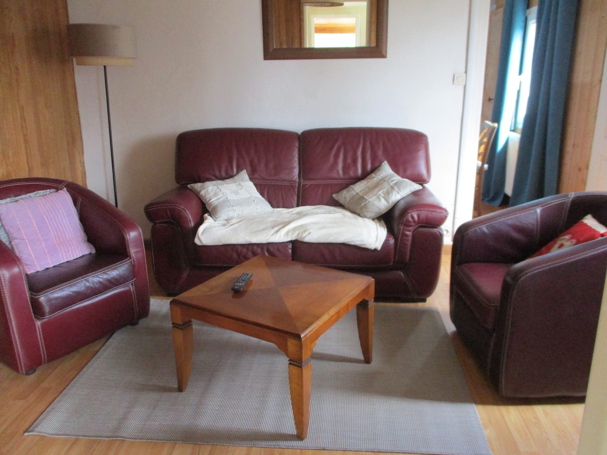 Simplifíquese la vida en este alojamiento tranquilo y céntrico. Casa reformada con el espíritu de las Cícladas como un nido luminoso. Gran sala de estar de 30 m2 con salón comedor cocina que da a una terraza para comidas al sol. Una estufa completa esta habitación para calentar los pocos días de lluvia que nunca duran. Arriba, una pequeña escalera conduce a 2 dormitorios con un baño con ducha en el centro. 1 dormitorio principal con cama de 160 cm x 200 cm 1 habitación para niños 2 camas de 90 x 200. La serenidad.