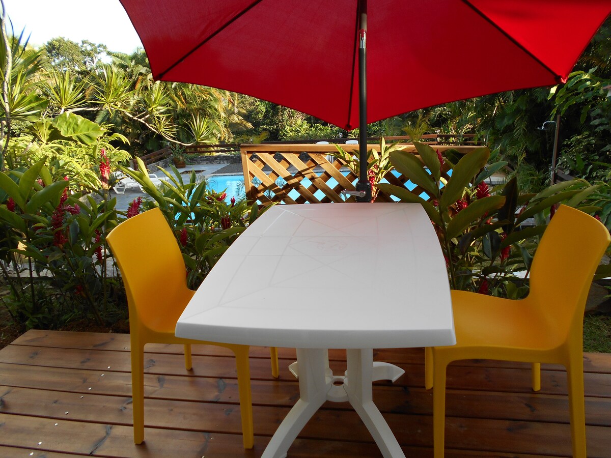 «COUNTRY LODGE» Alojamiento con encanto en un jardín tropical🌸🌴, con vistas al mar🤩. Dormitorio 1 cama(160x200 o 2 camas 80x200), cuarto de baño, cocina, terrazas, cubierta con tumbonas Alojamiento íntimo adyacente a la casa principal con acceso independiente Un plantador y acras de bienvenida se ofrecen Si es necesario, se proporcionan máscaras, tubos y aletas. Caja de libros. El country lodge ya no está disponible en sus fechas, puede consultar el anuncio del «lodge Rosewood» 😉