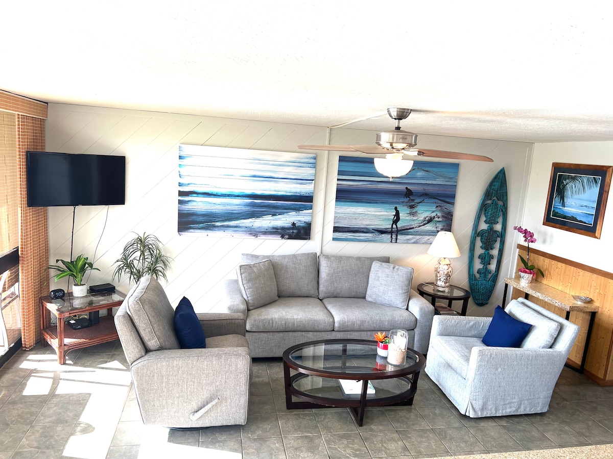 Este luminoso y espacioso apartamento actualizado es el lugar ideal para alojarse en la soleada Poʻipū para parejas, recién casados y familias pequeñas. El espacio abierto es limpio y acogedor, con un ambiente boho costero, y disfrutarás de hermosas vistas al mar y al jardín desde el enorme lanai de nivel superior. La ubicación es la mejor: desde la propiedad frente a la playa, puedes ir caminando a varias de las mejores playas de la costa sur, cafeterías locales, restaurantes, tiendas y la increíble piscina en cuestión de minutos.