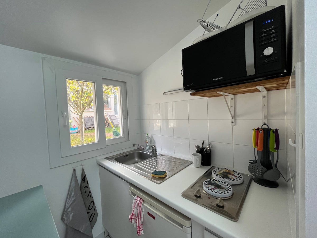 Una encantadora casa de muñecas acogedora de 23 m2 a dos pasos del mercado de Poissy, restaurantes, cine y tiendas, escondida en el fondo de un pequeño jardín detrás de una higuera y un manzano. Bien comunicada, a 10 minutos andando del RER y del tren a París . Tren o RER cada 15 minutos. Dispondrá de wifi de alto rendimiento y de todas las comodidades (calefacción, agua caliente, ropa de cama, etc.); la cama estará hecha. Los visitantes de habla inglesa son bienvenidos, y serán recibidos en inglés.