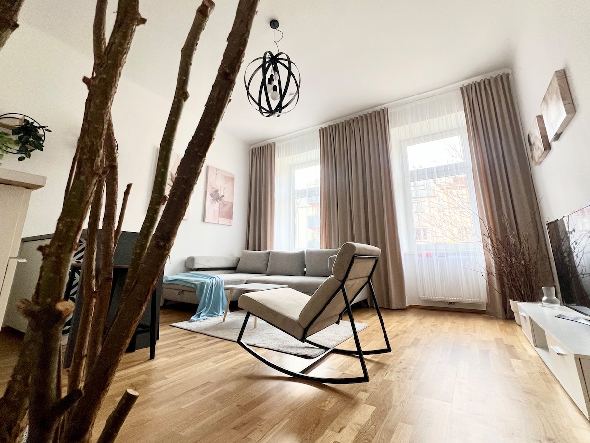 ✔CAFÉ y té gratis Televisión ✔grande ✔ Wifi rápido Cocina ✔completa Artículos✔ de tocador de calidad +jabón El loft recientemente renovado está diseñado con atención a los detalles y los muebles de diseño en un espacio acogedor y único. Aquí encontrarás paz e inspiración. La ubicación central - centro de la ciudad vieja a poca distancia; supermercados,restaurantes, cafeterías famosas, clubes, parques, metro y tranvía y mucho más están a la vuelta de la esquina. A poca distancia a pie del hospital más grande de Viena, el AKH, varias universidades y clínicas privadas.