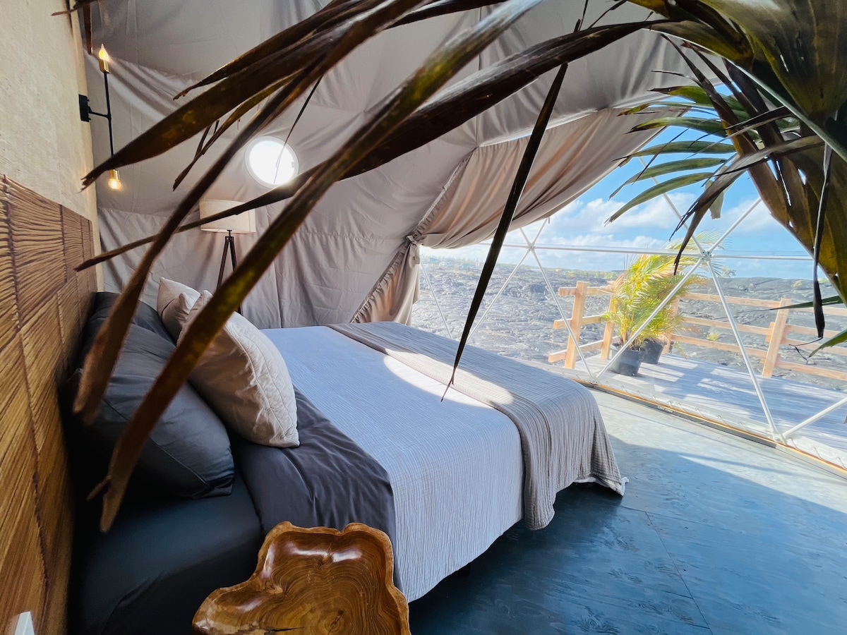Sleep in a luxury geodome on ancient lava fields, surrounded by one of Big Island’s rarest landscapes. This off-grid retreat offers a unique connection to nature, powered by solar energy and designed for mindful living. 15-min lava trail hike leads to breathtaking ocean cliffs — wild and unforgettable. Just 7 min to Black Sand Beach, farmers market, cafés, shops. Hot springs 15 min away. 🤩 Extraordinary experience! 🤩 Extra 4 sleeps available — ask the host if traveling with a bigger group.