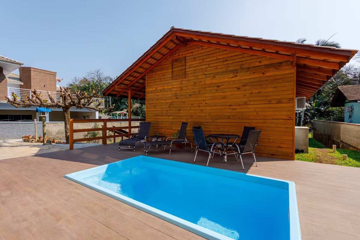 Relájate en este espacio tranquilo, elegante y con estilo. Un chalet con Alexa, jacuzzi y estructura completa para disfrutar en gran compañía de la estadía en la ciudad más alemana de Brasil. El espacio también ofrece terraza con sillones, huerto, sendero natural, huerto, cocina súper equipada, aire acondicionado frío/calor, TV con programación completa, Netflix, red wifi de alta velocidad y mucho más.
