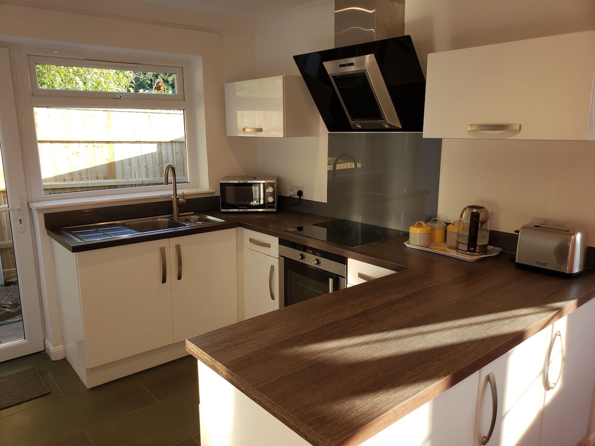 Bungalow moderno en una zona tranquila de Romsey, a poca distancia a pie de la ciudad y de la estación de tren. Conexiones de viaje a Southampton, Winchester y Salisbury, cerca del New Forest. Aparcamiento en la calle disponible. Cocina con electrodomésticos Bosch que incluyen lavadora, lavavajillas y horno doble. Microondas disponible. Barra desayunadora. El baño tiene bañera con ducha aérea. Una cama doble y sala de estar/conservatorio de planta abierta que incluye zona de comedor. Puertas de patio a terraza y jardín trasero privado.