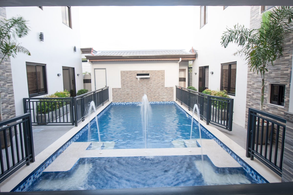 Estudio en el segundo piso con patio sobre la piscina, paquete de Internet ejecutivo, TV Samsung Smart 4K de 55 pulgadas, cocina totalmente equipada con utensilios de cocina, utensilios y cubiertos nuevos. Nueva cafetera de goteo, microondas. Una unidad para no fumadores con balcón con vistas a la zona de la piscina. La Grande Residence se ha convertido en la mejor opción tanto para viajeros de negocios como para turistas que visitan Clark Freeport y la zona de Pampanga. Relájate y desconecta en este alojamiento tranquilo, seguro y elegante.
