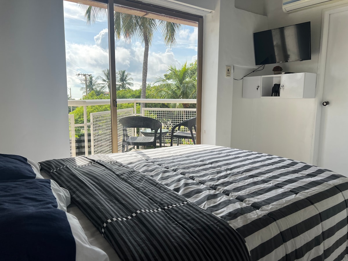 Despierte con el Caribe: Vistas panorámicas desde su cama King y la ducha. Lujoso apartamento de un solo ambiente para 4 personas (King + sofá cama). El complejo ofrece piscina, parque y acceso directo a una playa tranquila. Totalmente equipado con cocina gourmet y Wi-Fi de fibra óptica. Cero estreses: Pregunte por nuestro paquete Moto Scooter para moverse por la isla. ¡Su refugio premium le espera!