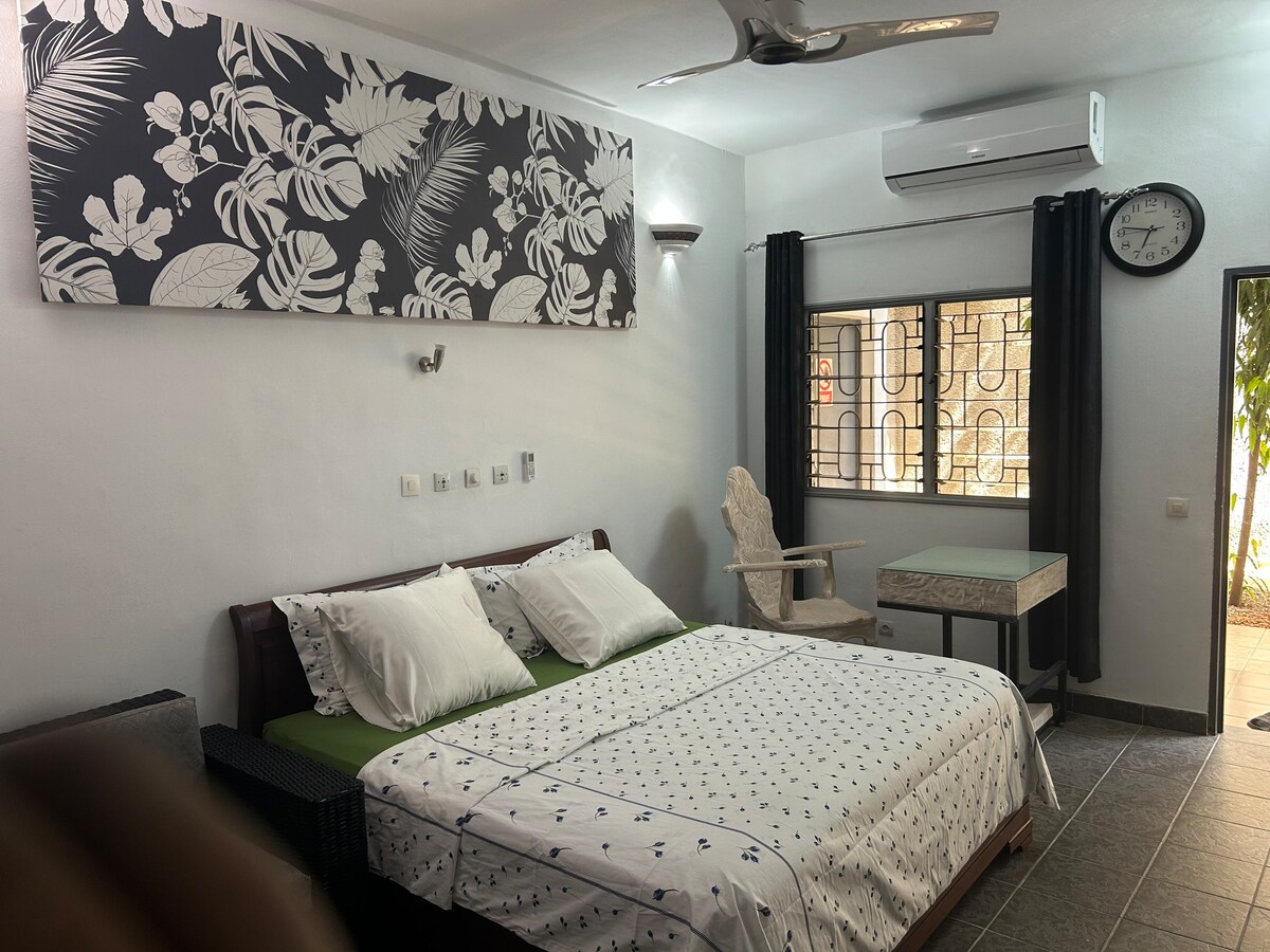 Gran apartamento (dormitorio, cocina y sala de estar independiente) Situado en una de las mejores zonas de Abiyán y situado en una residencia segura. Es el lugar ideal para disfrutar de la ciudad en una estancia corta o larga. ¡Se sentirá como en casa! Ideal para personas solas, en pareja o con amigo(a)s, viajeros, estancia de negocios. Este alojamiento es acogedor y moderno. Encontrará un jardín privado y todos los servicios necesarios para una estancia de calidad.