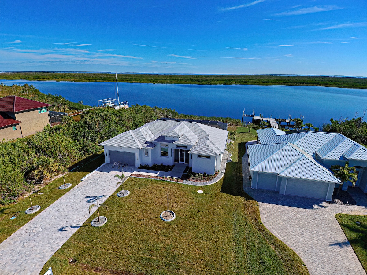 Relájate en esta escapada única y tranquila. Ubicada junto a un canal sereno, nuestro hogar es un santuario de tranquilidad y belleza natural. Desde el momento en que entras en la propiedad, te encuentras con encanto y encanto que solo la residencia frente al canal puede ofrecer. Para aquellos que disfrutan de las actividades al aire libre, el canal ofrece un lugar perfecto para practicar kayak, pescar y descansar en nuestra piscina de cócteles y jacuzzi. Las puertas corredizas de vidrio circundantes abren hasta 3 patios separados.