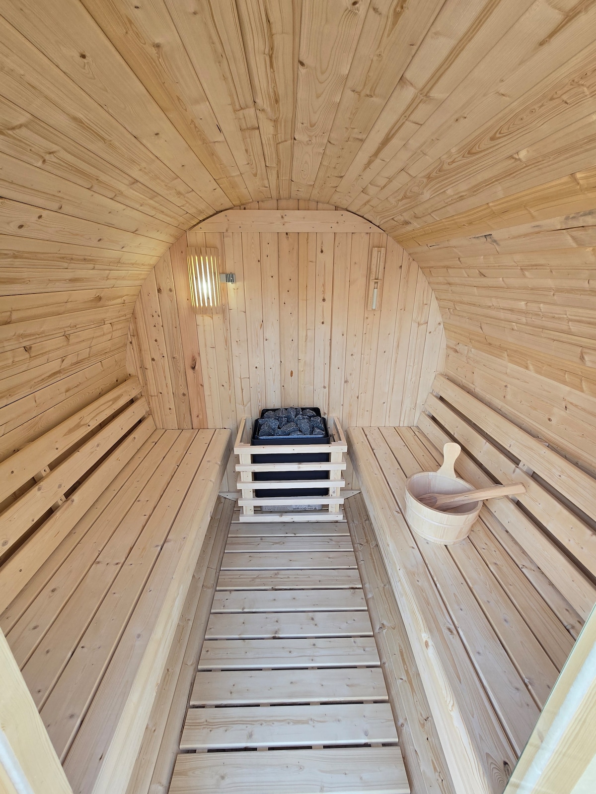 Casa independiente de estilo moderno con 200 m2 divididos en dos plantas. En planta baja dispone de un salón comedor con TV y sofá, cocina completamente equipada, un baño de servicio y un patio de 30 m2. En primera planta, dos dormitorios dobles con dos baños con ducha, una sauna, un jacuzzi y terraza de 15 m2. Hay calefacción de suelo radiante en toda la casa y aire acondicionado calor/frío en los dos dormitorios. Servicio de limpieza cada 7 días de estancia.