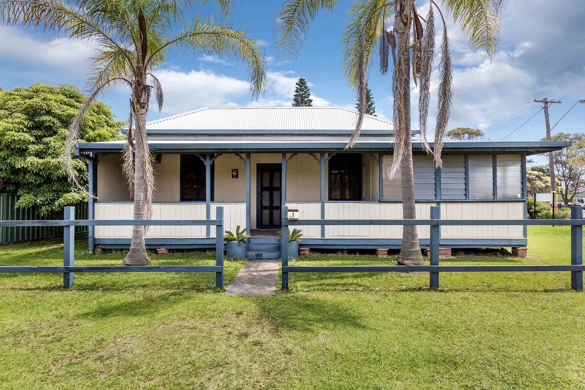 ¡Esta encantadora casa de playa retro restaurada está a pocos minutos de la hermosa playa de Flynns! Nuestra casa de campo ha sido renovada con cariño y está elegantemente decorada con una mezcla única de muebles eclécticos y modernos y electrodomésticos nuevos. Nuestra sala de estar cuenta con unas vistas increíbles de Port Macquarie. Con un impresionante solárium para relajarse con un libro. Ideal para solteros, profesionales que trabajan o parejas que buscan una escapada tranquila o una escala nocturna.