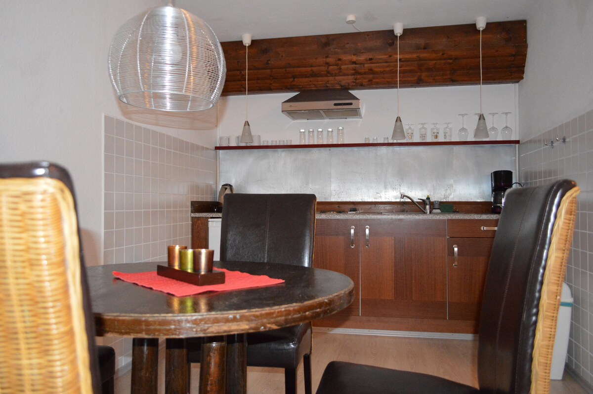 Un estudio bastante moderno. Perfekt para estudiantes o entrantes de empleo. Tenemos todo lo necesario. Baño: ducha de lluvia especial. Cocina con microondas, nevera y todas las demás cosas que uno necesita. Si te pierdes algo, avísame. Enorme balcón, genial para relajarse. SAT: TV de todo tipo de canales alrededor de 1000. WIFI. A la vuelta de la esquina tienes tiendas como Aldi, Penny y más de 100 a 200 metros.