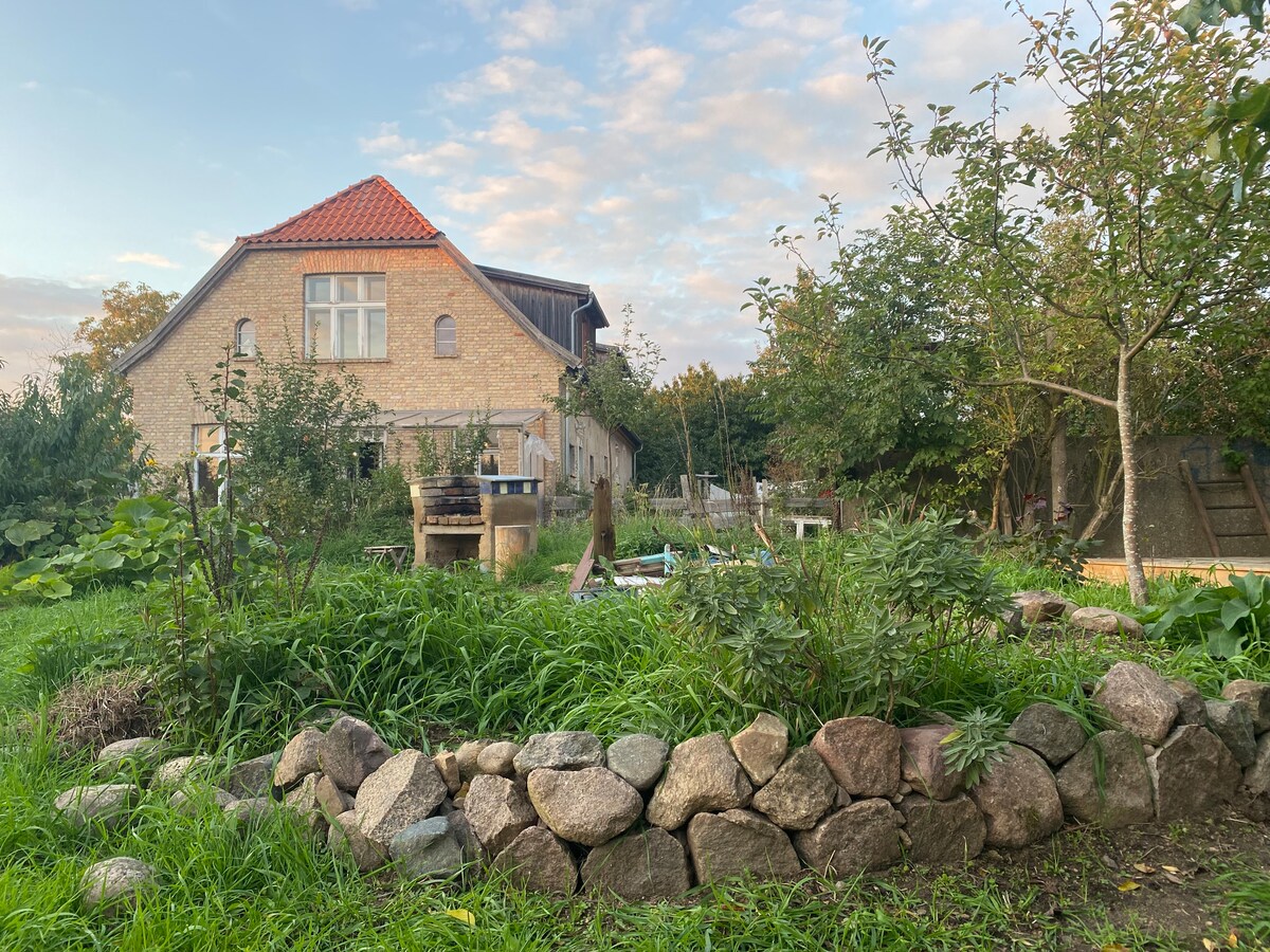 La casa está situada en un mar de campos, bañada por el viento en un hermoso jardín de plantas perennes. Con la ayuda de muchos colegas artistas y amigos, esta antigua pensión de los años 90, que no tenía nada de especial, se convirtió en un pequeño oasis y se creó un jardín con la ayuda del paisajista Rainer Elstermann. En constante crecimiento y cambio, surgió y sigue surgiendo un lugar idílico en el que se alojan 10 personas.
