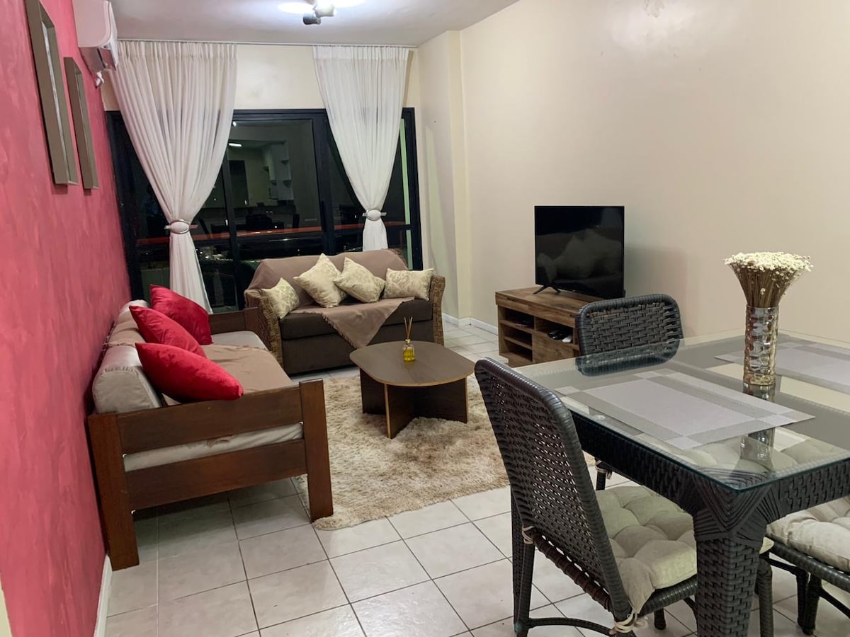 Apartamento en condominio seguro. El lugar está bien ubicado, cerca del Palacio Rio Negro en el centro de Manaos. El lugar es acogedor, limpio y seguro, ya que cuenta con una caseta de vigilancia. El espacio está en el tercer piso (subir escaleras) tiene capacidad para dos personas para una cama queen, sofá cama y espacio para una hamaca. El apartamento es totalmente “suyo” NO es compartido.