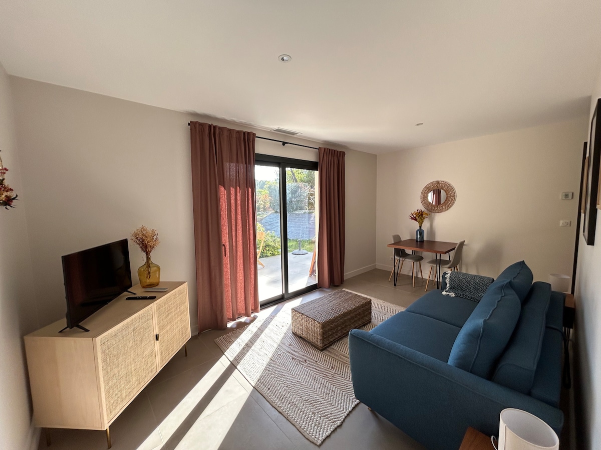 Studio neuf lumineux et au calme, classé 2 étoiles ⭐⭐, accolé à notre maison mais totalement indépendant avec entrée privative et terrasse. Le studio comprend : ❄️ Climatisation 📺 Télévision avec accès Netflix 🚿 Douche italienne 🚽 WC suspendu 🛏️ Grand lit 160x200 cm 🍽️ Cuisine neuve avec : - Réfrigérateur - Plaque induction - Machine Nespresso ☕ ☀️ Terrasse 📶 Wi-Fi 🅿️ Stationnement gratuit 🛏️ Linge de lit et serviettes de bain fournis Visites et soirées interdites 🚫