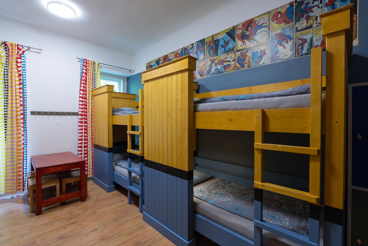 Relax in our spacious en suite room with a double and single bed — ideal for a couple or a small group of friends. Enjoy access to a shared kitchenette, sunny terrace, peaceful garden (weather permitting), and our on-site bar. Located in a hostel building with reception downstairs, you’ll have the choice of full privacy or connecting with fellow travelers. Stop by for maps, tips, coffee, or a cold Czech beer anytime!