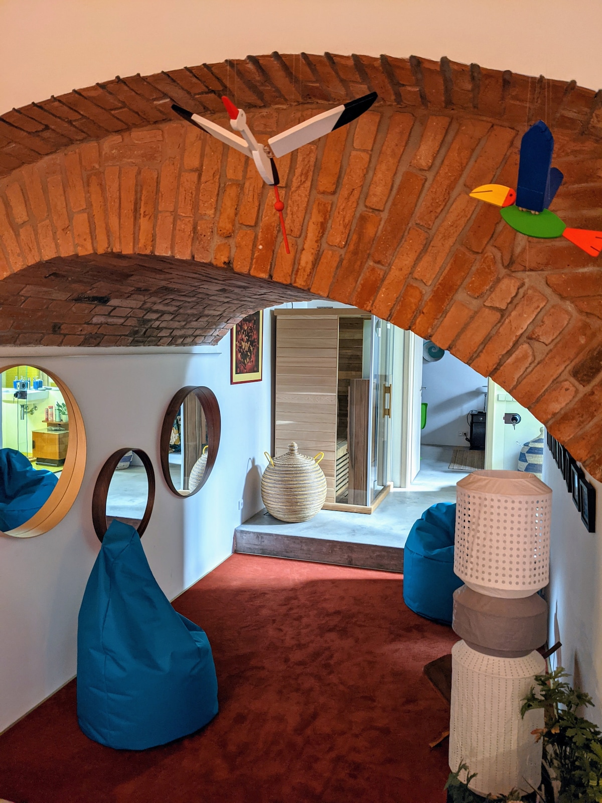 UN APARTAMENTO ATÍPICO Un apartamento en el sótano de 80 m2, un dormitorio de más de 20 m2, 7 m de altura del techo, el encanto de las bóvedas de ladrillo. UN DISEÑO MODERNO PARA UN LUGAR CON HISTORIA El apartamento ha sido diseñado por un arquitecto y es nuevo. En los años 70 se encontraban aquí los talleres de un artesano vidriero. GRAN CONFORT Tome una sauna con música después de un largo día de turismo. Una cama king size le espera para una noche reparadora.