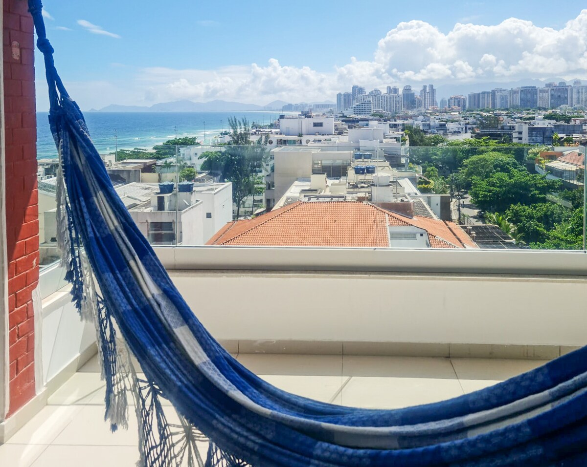 ¡Increíble vista al mar hasta Pedra Pontal! Zona de primer nivel de la playa de Barra. Baño de bicicleta, a 2 minutos a pie de la playa. Ocean Breeze. Despierta y mira el cielo azul y el mar. ¡Acuéstate en nuestra hamaca y disfruta de las vistas! Relájate en este espacio tranquilo y elegante. Wifi y aparcamiento gratuitos. El gimnasio está temporalmente cerrado por reformas.