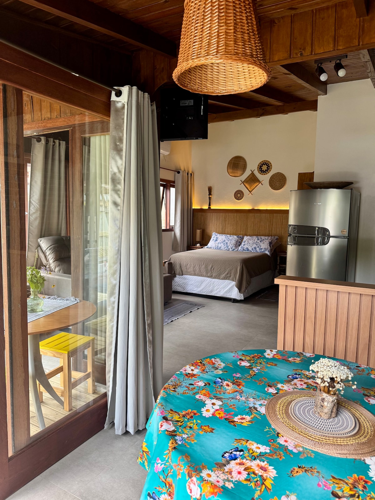 Um pequeno refúgio na barra de Ibiraquera, studio localizado nos fundos de uma casa, com corredor privativo de entrada e área privativa toda cercada. Localizado ao lado do mar, e uma ótima opção para casais que querem tirar uns dias para descansar. O studio tem tudo que um casal precisa para ficar bem acomodado, cozinha equipada, ar condicionado, cama queen size, banheira. A decoração ‘e inspirada na charmosa thailandia.