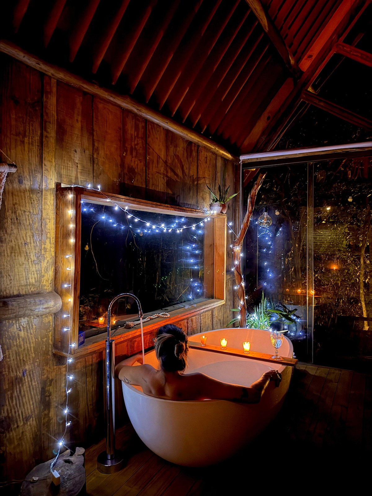 Cabaña privada con bañera en medio del bosque