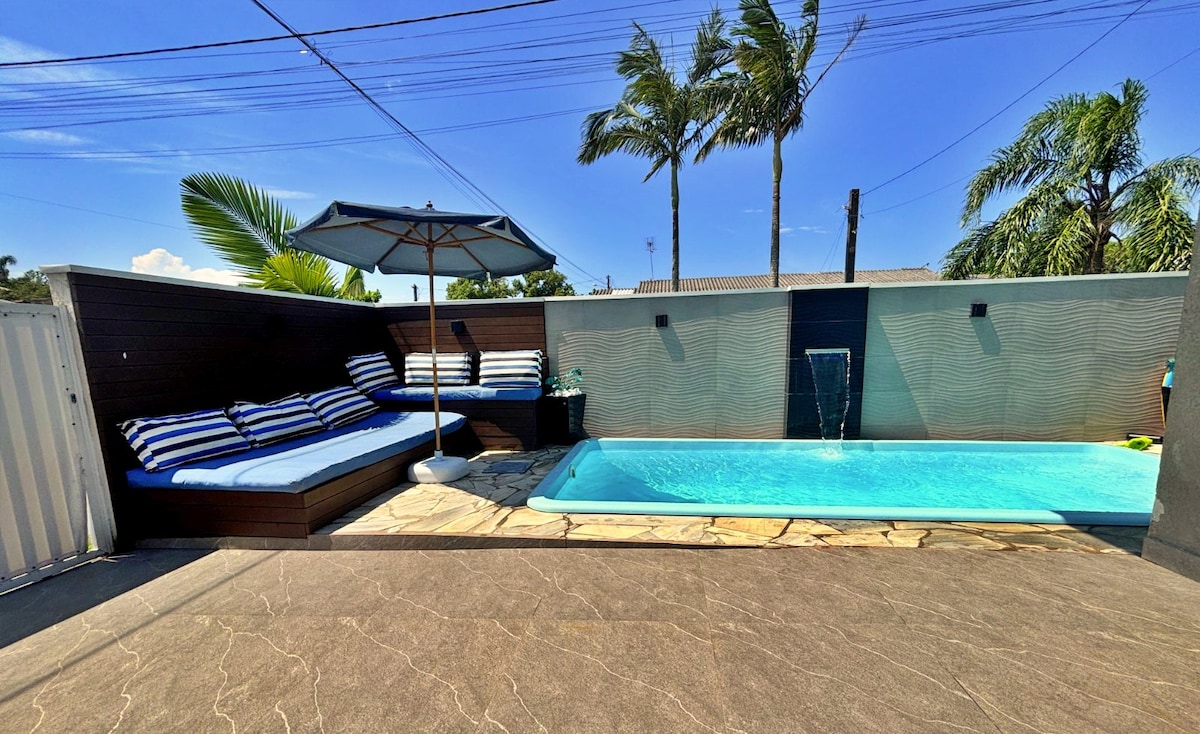 Apresentamos a Casa Nazaré, uma encantadora casa a 500m do mar. Contendo: - 2 quartos c/ cama de casal, armários planejados e ar condicionado em ambos os quartos; - Sala c/ sofá reclinável, TV smart e 2 ventiladores; - 2 colchões de solteiro; - 1 banheiro; - Cozinha equipada, c/ geladeira, fogão, microondas, filtro de água e utensílios; - Espaço gourmet c/ churrasqueira e piscina; - WIFI, alarme e câmeras de segurança; Bem localizada, próximo a farmácia, mercado, panificadora, posto e banco.