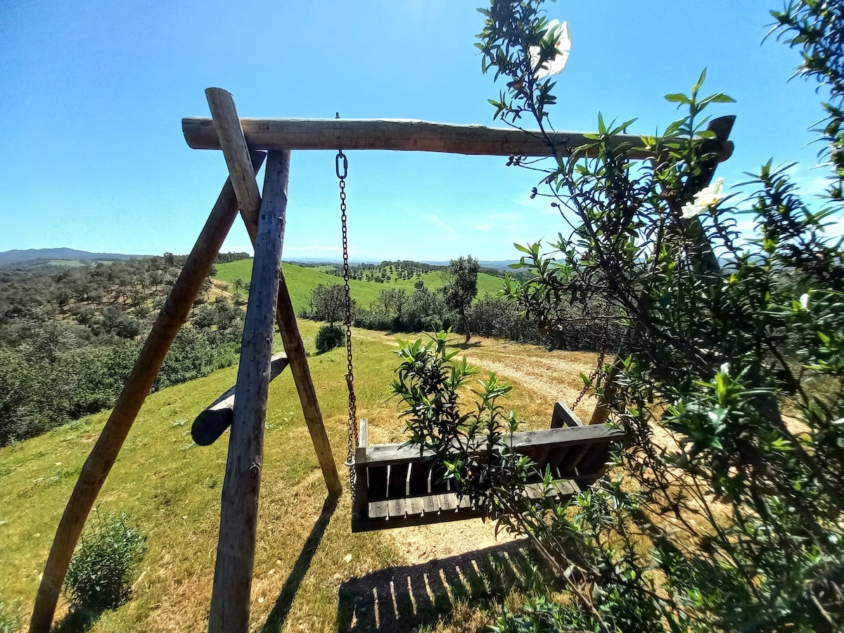 Este refugio se encuentra en medio de un gran bosque de alcornoques, con más de 30 hectáreas, con muchos senderos para paseos agradables, viendo muchas variedades de aves, varios lugares para practicar yoga o simplemente contemplar el bosque de alcornoques o el horizonte. ¡Aquí sin duda serás feliz durante tu estancia ! Si quieres una estancia larga y necesitas trabajar, puedo proporcionar un router de Internet.