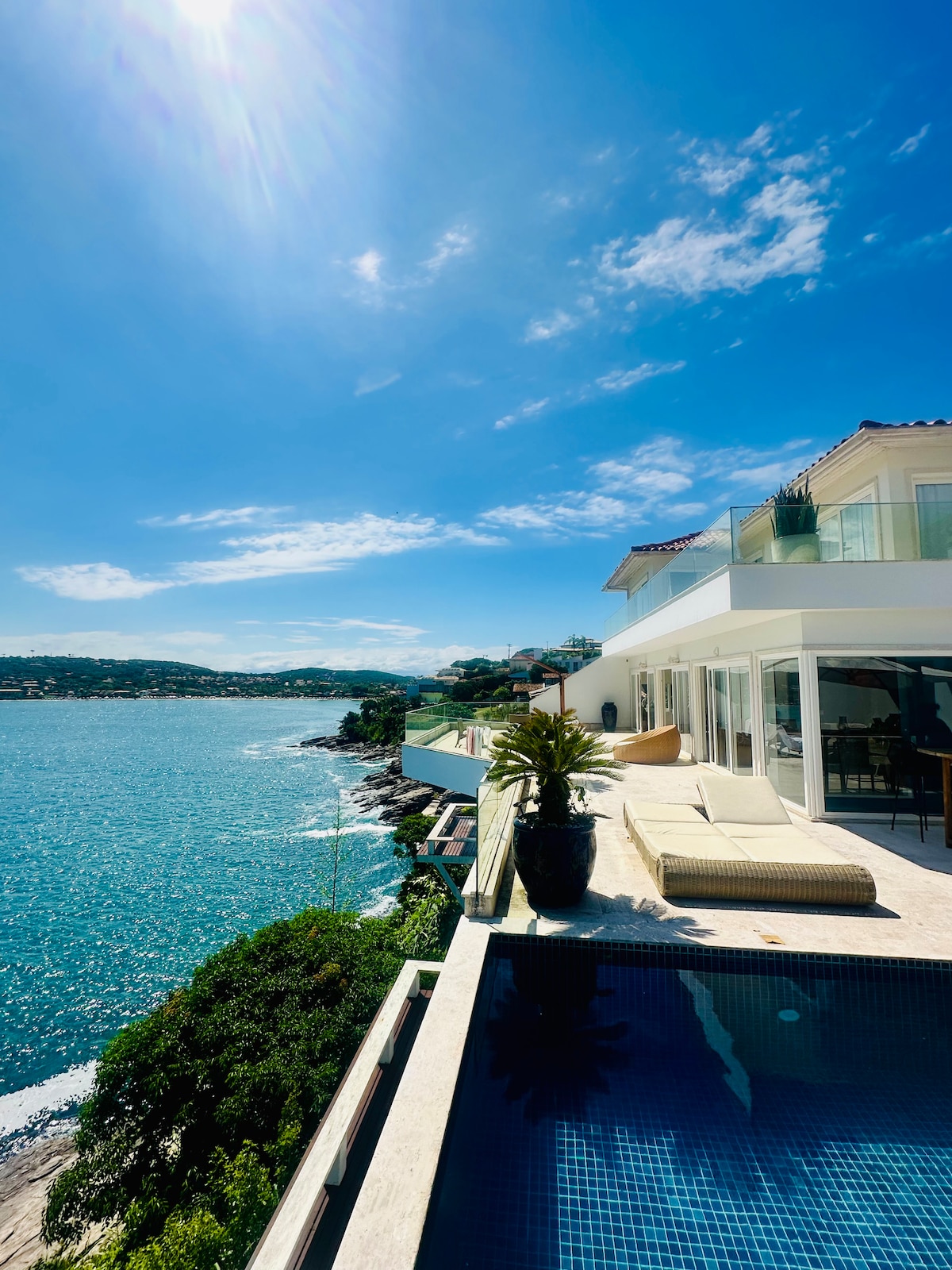 VILLA OCEANO - Villa exclusiva frente al mar con 5 suites en la bahía de Ferradura, Búzios. Disfruta de impresionantes vistas al mar, piscina infinita, acceso privado al mar, privacidad total, seguridad 24/7, WiFi de alta velocidad Starlink. Ideal para estancias de lujo, vacaciones familiares o celebraciones especiales con total comodidad y seguridad.