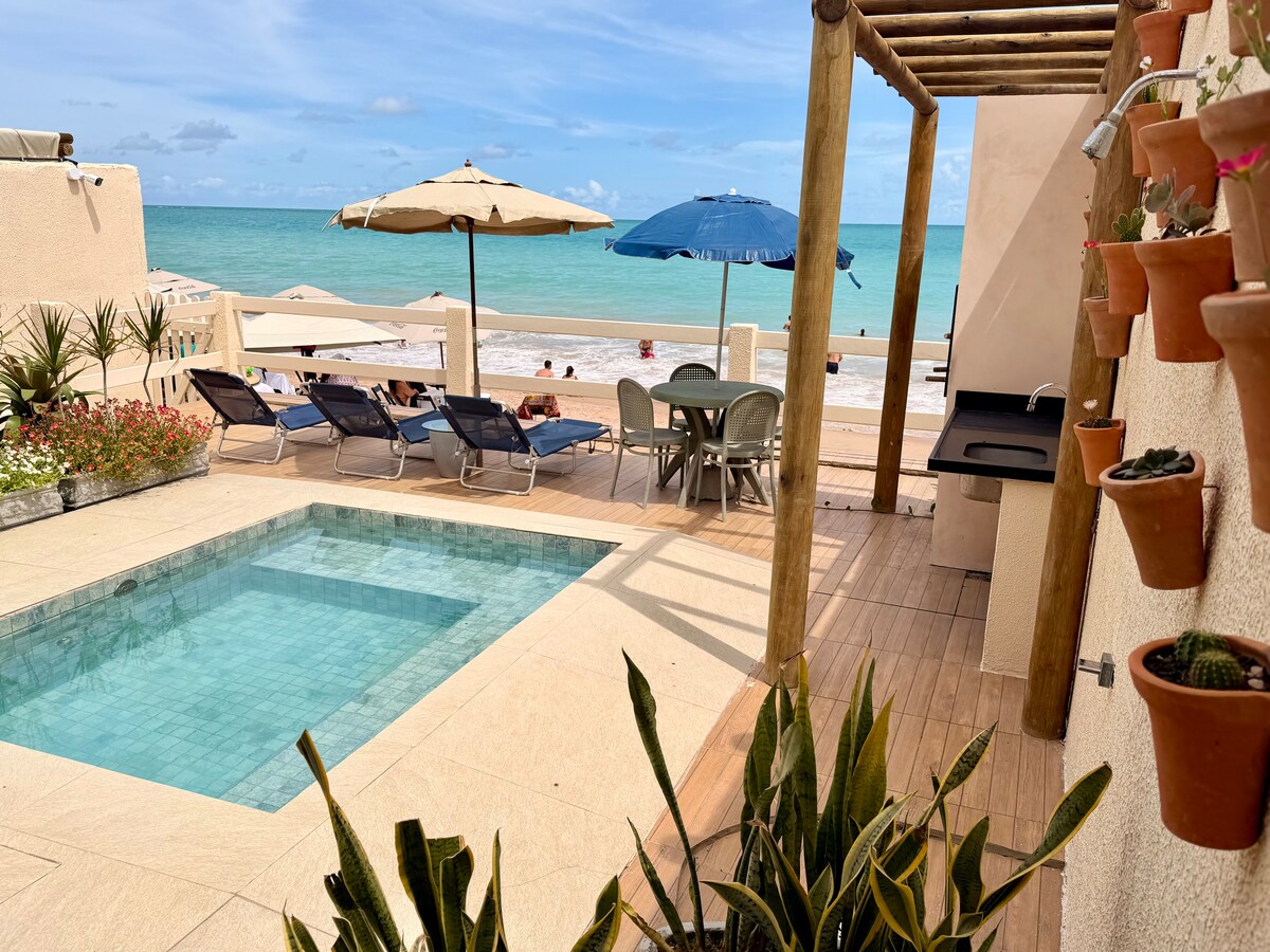 Casa completa en Ipioca con 3 suites con aire acondicionado, todas con baño privado. Ropa de cama y toallas incluidas. Piscina privada, zona de barbacoa, wifi y TV. - Acceso directo a la playa e impresionantes vistas al mar. Experiencia única: despiértate con el sonido de las olas y disfruta de una puesta de sol inolvidable junto a la piscina. Ideal para familias que buscan comodidad y ocio frente al agua. Nota: El jacuzzi de la foto no tiene agua caliente.