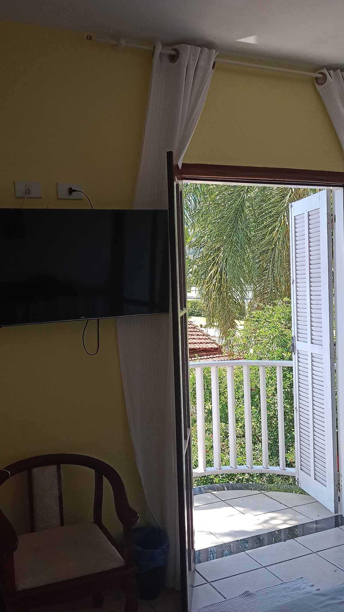 A suíte tem ar condicionado, TV e no final do 2024 um frigobar.