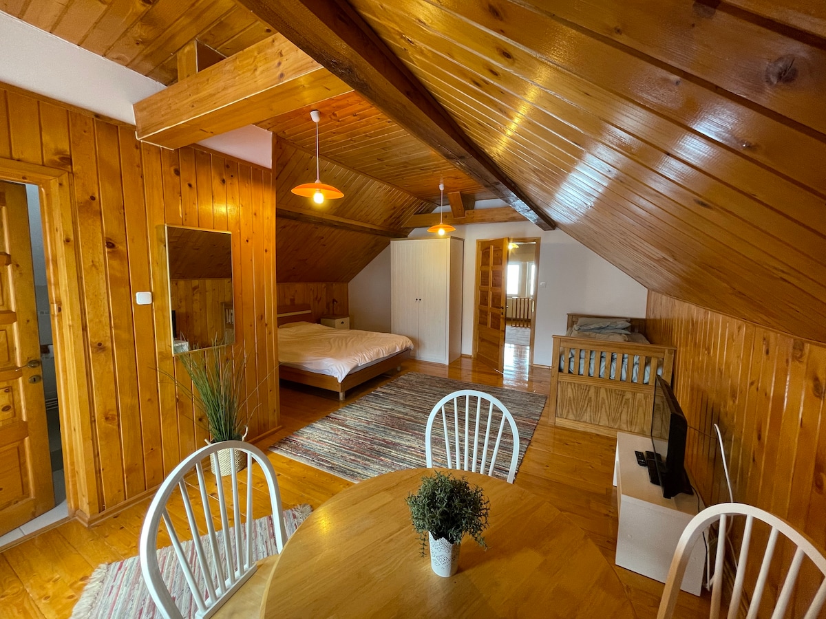 Este apartamento rústico de madera tiene una ubicación impresionante a 5 minutos a pie del centro de la ciudad y a 6 km de Poiana Brasov. El barrio tranquilo y privado es perfecto para familias y jóvenes. Nuestro apartamento tiene una vista de 180 grados a la ciudad y también a Tampa. Tiene un espacio común bastante grande, un dormitorio y un baño adecuado para parejas o grupos de hasta 4 personas.