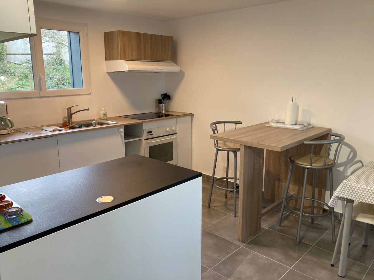 El anexo 43 está a 800 metros del centro de la ciudad de Guérande, tiendas, animación, mercado a pie. - Estancia a partir de dos noches - Tarifa decreciente a partir de la quinta noche -El anexo 43 incluye Sala de estar - Cocina equipada - dormitorio (cama king size) - Cuarto de baño (ducha grande) inodoro- - Una plaza de aparcamiento - wifi - - Ropa de cama incluida (sábanas, toallas) - El alojamiento es independiente y cuenta con jardín y terraza.
