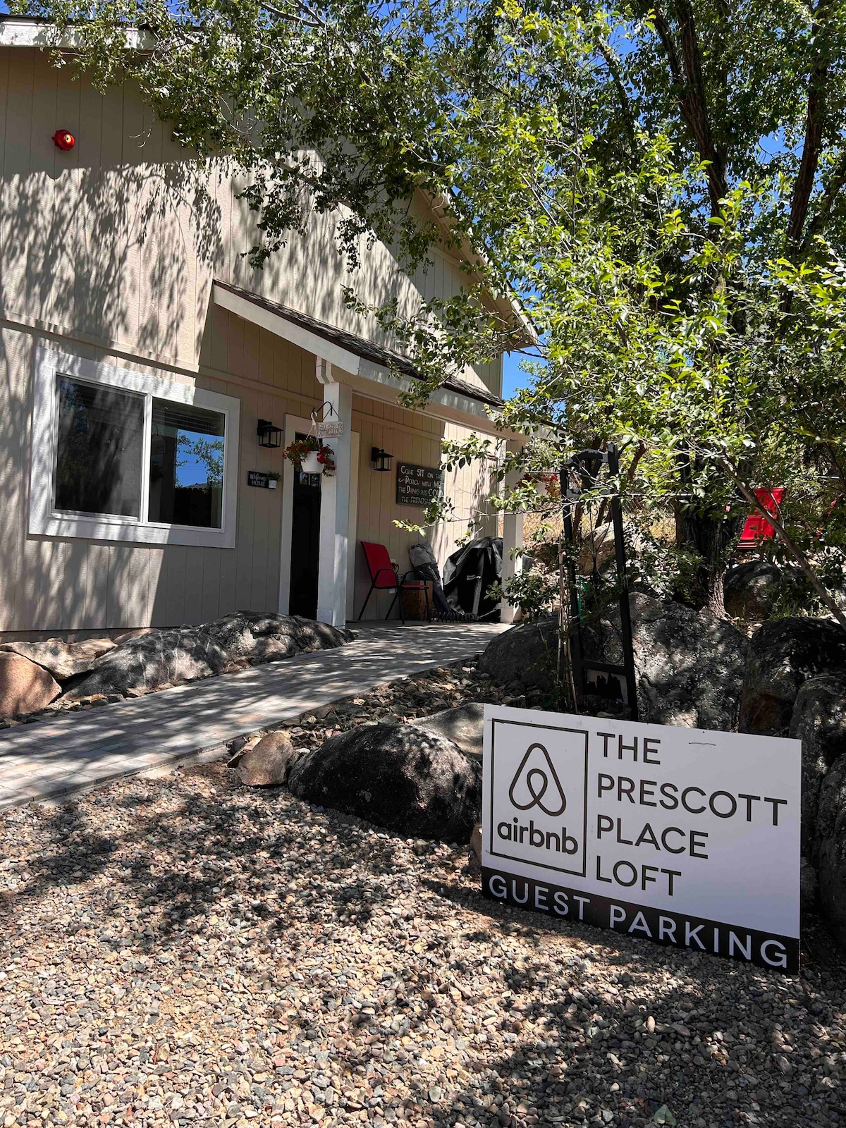 El Prescott Place es un alojamiento privado de un dormitorio totalmente amueblado con una cama tamaño queen, además de un loft con 2 camas individuales y un futón. Cocina completa y baño. El centro de Prescott Courthouse Square está a solo 1,3 millas y a 0,5 millas de los terrenos del Rodeo. A minutos de restaurantes, senderismo, ciclismo, parques y tiendas. Te encantará esta casa de huéspedes privada diseñada para crear un espacio muy limpio y cómodo, ideal para parejas, aventureros solitarios, viajeros de negocios y familias. ***Por favor, lee la descripción completa para obtener más información.***
