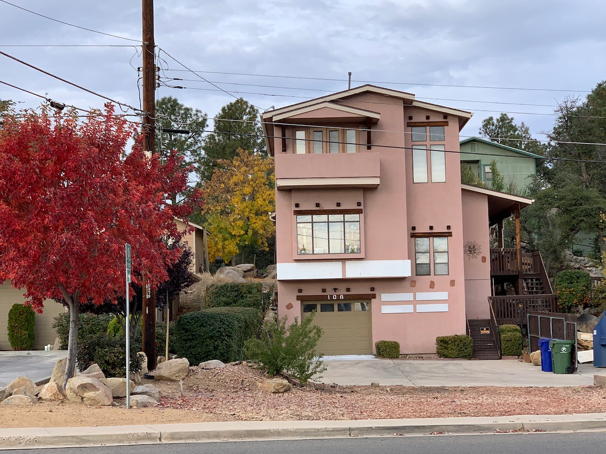 ¡Camina hasta la histórica plaza del juzgado, pero disfruta de un apartamento estudio privado y un entorno de jardín! A solo 2 cuadras de Whiskey Row... sin preocupaciones de conducción y estacionamiento. Mi hermoso estudio está por encima del garaje en el encantador centro de PRESCOTT Az. Hay una entrada separada y el estudio es muy privado. Está separado de la casa principal. No es accesible para discapacitados. Esta es realmente una adorable casa de muñecas, arriba, en el centro de la ciudad. Apto para 2 adultos.