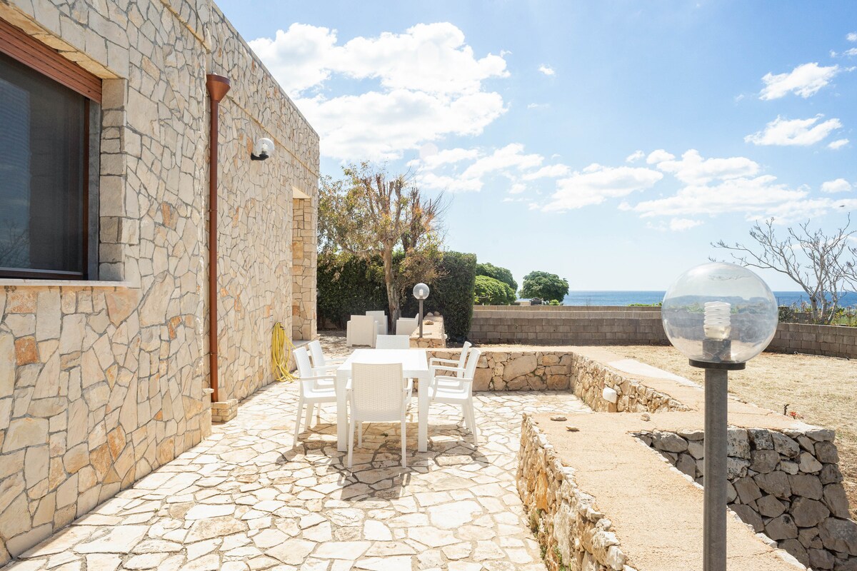 Villa Sonia, con vistas al mar (en el parque natural), tiene unas vistas espléndidas, está rodeada por el mar, por el verde de los olivos, por el matorral mediterráneo y por los pinos marítimos. Se oyen las olas del mar rompiendo contra las rocas, el canto de los pájaros y el hermoso canto de las cigarras. Tranquila, relajante, adecuada para parejas y niños por sus amplios espacios al aire libre. A 2 km del pueblo de Corsano y 8 km de Santa Maria di Leuca, a 100 metros hay un quiosco para refrescarse durante el día.