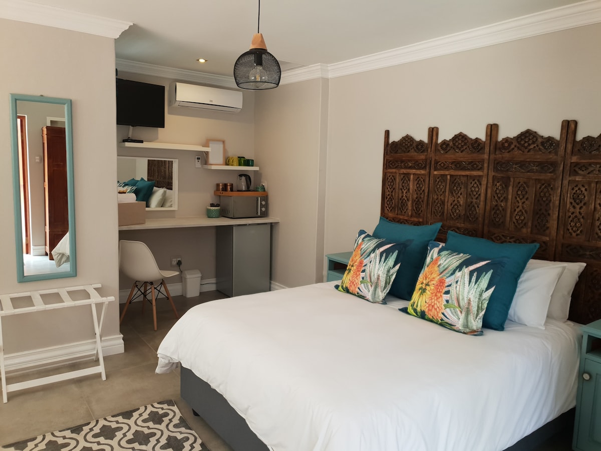 Cumple con las normas de limpieza y alojamiento de Covid-19. Habitación de planta abierta recién reformada, separada de la casa principal, que ofrece una cama tamaño queen, un lujoso baño, ducha y aseo separado. Esta habitación tiene su propia zona exterior designada. Cerca de: Hospital Kloof, parque de ciclismo de montaña y carreras de montaña de Wolwespruit, Hospital Faerie Glen, Menlyn Maine, Centro Comercial Menlyn, Sun Time Square Arena/Casino, N1, Lynnwood Bridge, The Club Centre, The Village - Hazelwood