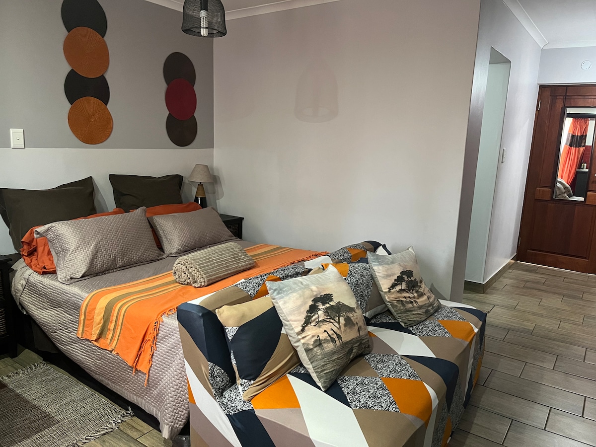 Tenemos energía alternativa instalada y las interrupciones de energía son mínimas. Kingfisher Retreat se encuentra en el tranquilo y seguro barrio de Wingate Park. Nuestro alojamiento es una suite independiente cerca de centros comerciales. Nuestra ubicación también está convenientemente cerca de las carreteras de acceso. Lamentablemente, NO admitimos niños ni mascotas.