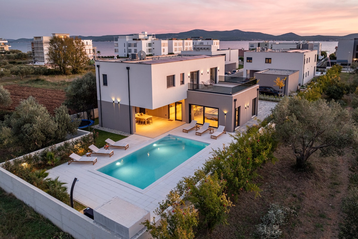 Stunning Villa in Kozino with Panoramic Sea Views Welcome to our exquisite villa located in the charming town of Kozino, just a short drive from the vibrant city of Zadar. This brand-new villa boasts breathtaking sea views of the Zadar archipelago, making it the perfect retreat for a serene and luxurious holiday.
