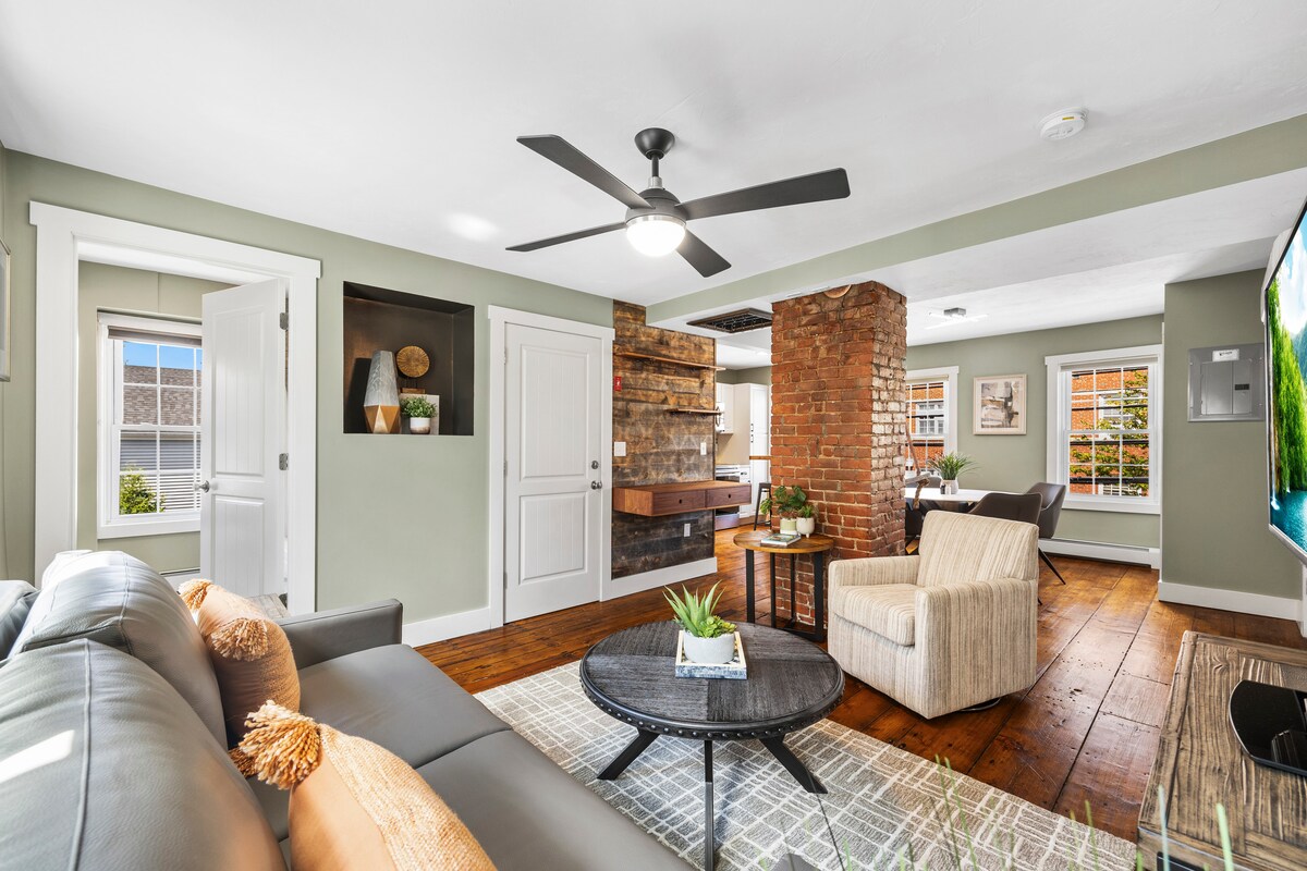 Magnífico loft moderno de dos niveles con entrada privada, jardín personalizado y 1 plaza de aparcamiento con carga gratuita para vehículos eléctricos. Capacidad máxima para 6 adultos en 3 dormitorios; se admiten niños adicionales. Ubicado en Riverwalk y puente peatonal. A 5 minutos a pie de bares y restaurantes. A 10 minutos a pie de Brown y RISD. Aire acondicionado central, cocina premium con electrodomésticos profesionales, altavoces envolventes incorporados y obras de arte personalizadas en todas partes. El balcón cuenta con una barbacoa de gas natural y tiene vistas al jardín privado con espacio para cenar y entretenerse.