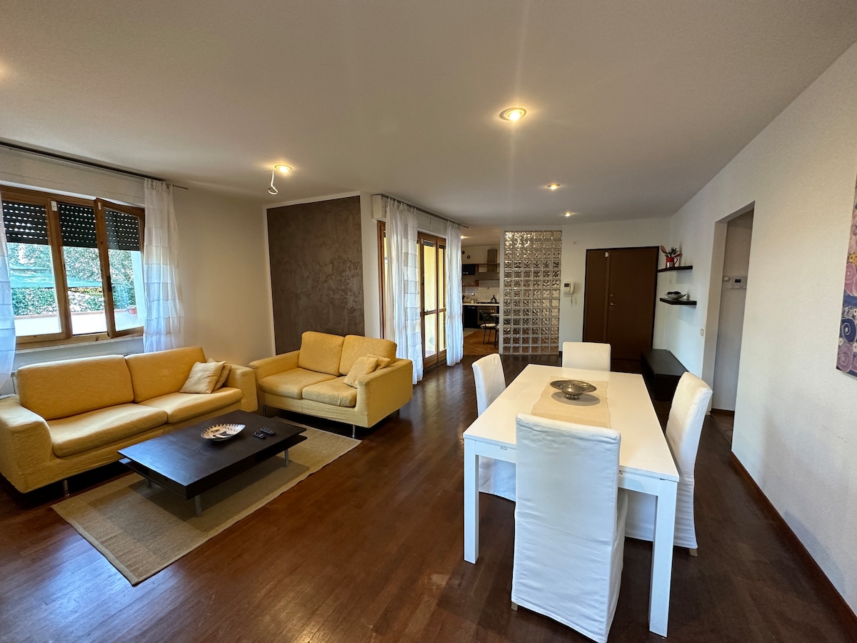 Apartamento de 120 m², elegante y funcional, con 250 m² de espacio exterior Ideal para quienes buscan una estancia tranquila y cómoda en familia Cuenta con dos cómodas habitaciones, un amplio salón, una cocina y una zona exterior con barbacoa. Ubicación estratégica para visitar Florencia y las colinas de Chianti Si llegas en coche, está a solo 5 minutos de la salida de la autopista Florencia-Scandicci y de la FI-PI-LI. A pocos pasos de la parada de autobús que lleva al tranvía hacia Florencia