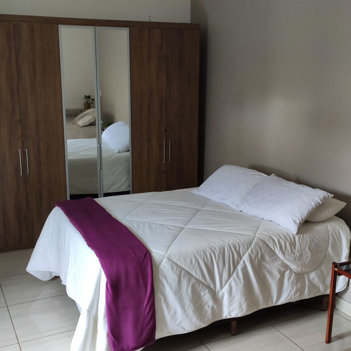 Espaço familiar, aconchegante, calmo, seguro, amplo, próximo ao centro da cidade e bem próximo as avenidas que dão acesso as grandes empresas aqui localizadas, como AmBev, Iveco, etc. A acomodação é bem ampla com um gramado na porta da casa, cercada por paus de eucalipto e uma porta que isola e garante total privacidade para os hóspedes. Há 30 passos da lagoa Boa Vista. Lugar ótimo para caminhadas, com parques feiras, etc.