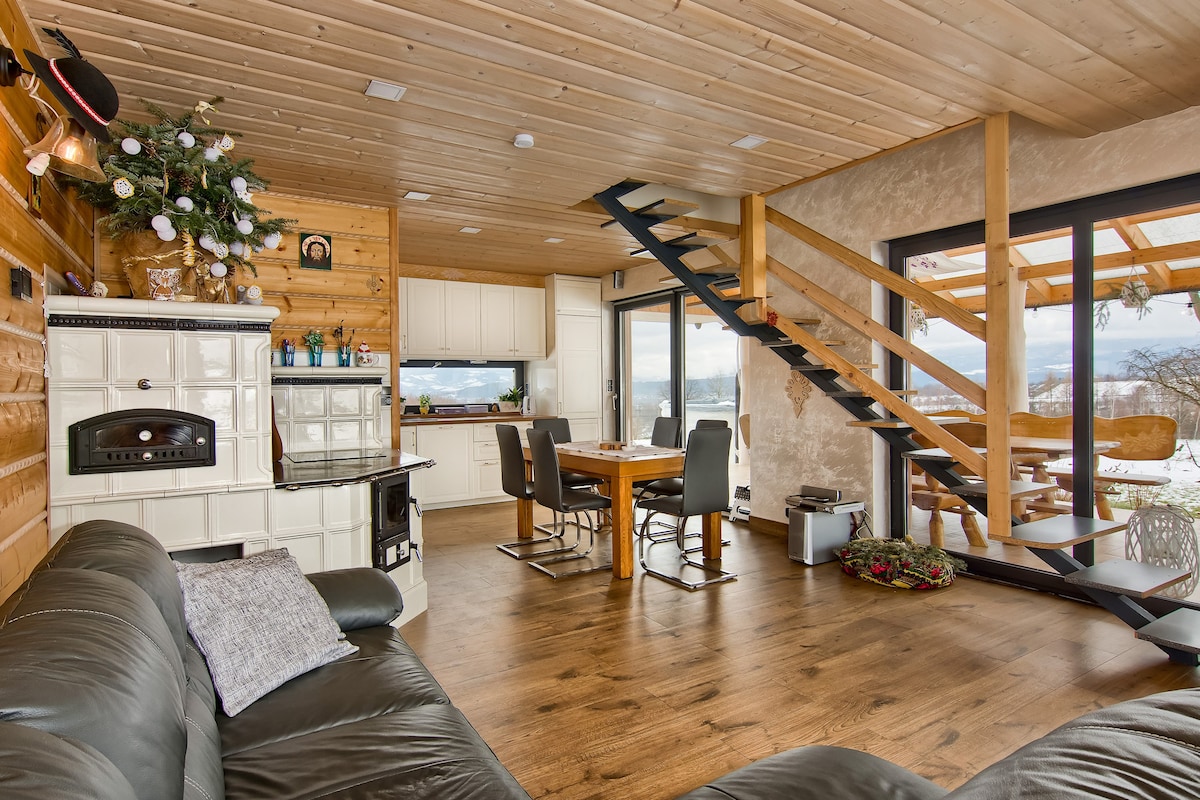 HONAY HOUSE es una CASA de campo acogedora y moderna con una vista impresionante y única de las montañas High Tatra. Nuestra casa está perfectamente diseñada para todos los que buscan naturaleza salvaje, recreación activa o simplemente un refugio de los concurridos resorts de Podhale. Es un lugar tranquilo. Como diseñadores, nos encargamos de cada detalle para que experimentes un interior de alta calidad que es extremadamente natural y cálido. Fuera de la casa también puedes disfrutar de una terraza de madera fría. Te damos la bienvenida a alojarte en nuestra colina.