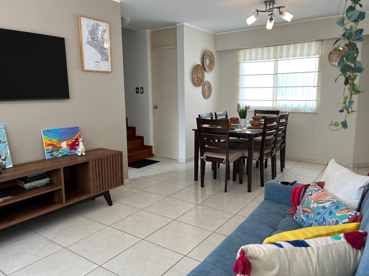 Departamento de estreno completo totalmente equipado que esta ubicado en una zona estratégica de avenida principal en Lima, Perú. Con áreas comunes en el edificio para que hagan de tu estancia una experiencia única. Está creado con la intención de ofrecer un espacio cálido y acogedor a mis huéspedes, además de unas vistas panorámicas excepcionales que te permitirán disfrutar de las puestas de sol y de la belleza de la ciudad.