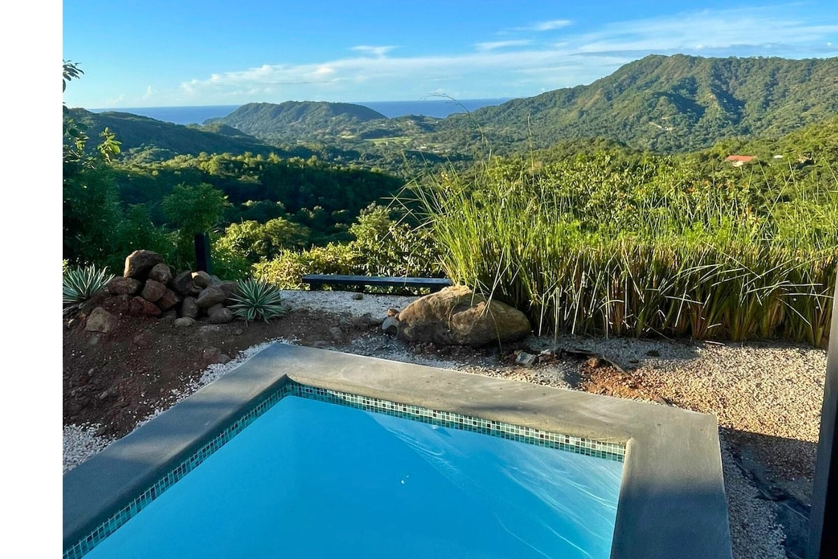 From this hilltop location above Tamarindo Bay, you will enjoy a panoramic view that is unbelievable. You’ll see what we mean when you get here! The Casita offers a King bed and a pull-down Queen bed, fully equipped with a private bathroom, kitchen, and a small balcony perfect for watching monkeys in the surrounding trees! You will also have access to the property's social space including a breezy covered terrace by the ocean-view pool and rooftop lounge!