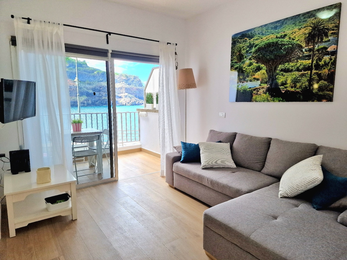 Confortable apartamento ubicado a primera línea de costa, con maravillosas vistas al mar y al acantilado. Buena iluminación natural y a pie de playa, es perfecto para disfrutar de la tranquilidad y el descanso. En la planta baja hay un restaurante donde podrás saborear diferentes menús. También hay farmacia, supermercado y parada de autobús muy cerca. El centro de la ciudad está a diez minutos, pudiendo visitar el drago milenario , ir de tiendas y degustar los vinos locales.