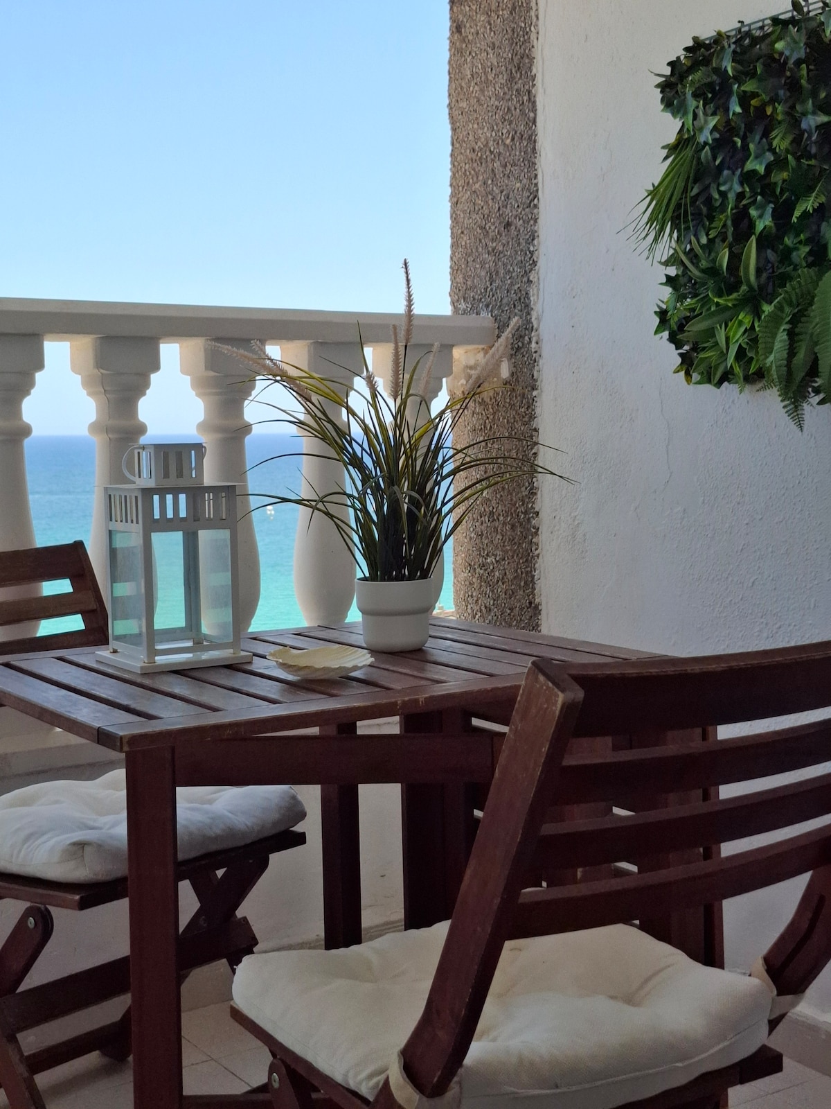 Apartamento bonito y acogedor con vistas al mar. Urbanización Puerto y Playa. Cerca de las playas Playa Mistral y Playa del Estacio (a 3-5 minutos a pie). Alojamiento con wifi gratuito, aire acondicionado, 2 ventiladores, TV, cocina totalmente equipada con microondas, cafetera de cápsulas y lavadora. Un dormitorio, más sofá cama en la sala de estar. Piscina grande, parque infantil, cerca del supermercado, bares y restaurantes. Las pistas de pádel y tenis están a 5 minutos a pie.