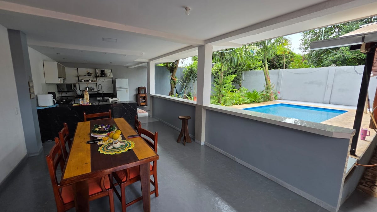 Disfrutá una estadía práctica y cómoda en una ubicación verdaderamente céntrica, ideal para moverte por Puerto Iguazú sin depender del auto. El ingreso es totalmente autónomo mediante cerradura con código, ofreciéndote libertad absoluta de horarios. Contamos con Wi-Fi rápido, generador, pileta, comedor al aire libre con heladera, pava eléctrica y espacio para lavar platos. Además, disponemos de una zona de trabajo con aire acondicionado para mayor confort.