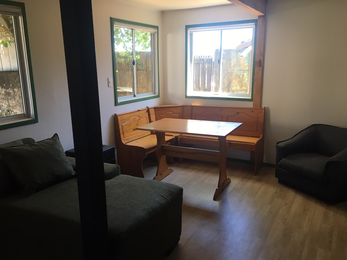 Linda cabaña para 2 personas en excelente barrio residencial, muy tranquilo, silencioso y seguro, con una linda vista a una pequeña quebrada y estero, cerca del lago, Costanera, restaurantes, ideal para tener como punto de partida a todos los lugares turísticos de la zona. Perfecta para una pareja o persona sola. Se puede habilitar espacio y escritorio a quien requiera trabajar en forma remota.